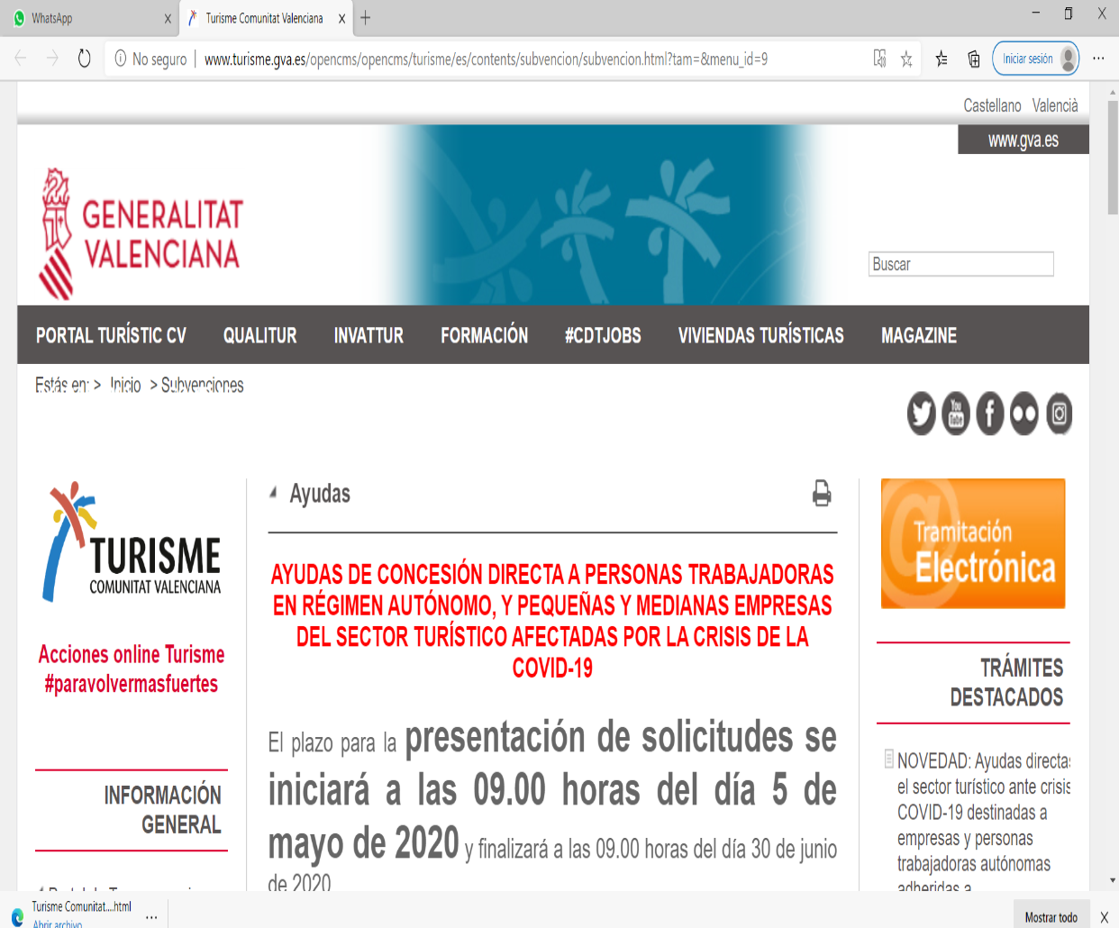 - GUÍA PARA LA TRAMITACIÓN ELECTRÓNICA DE LAS SOLICITUDES CORRESPONDIENTES A LAS AYUDAS DIRECTAS PARA EL SECTOR TURÍSTICO ANTE LA CRISIS PROVOCADA POR EL COVID-19.