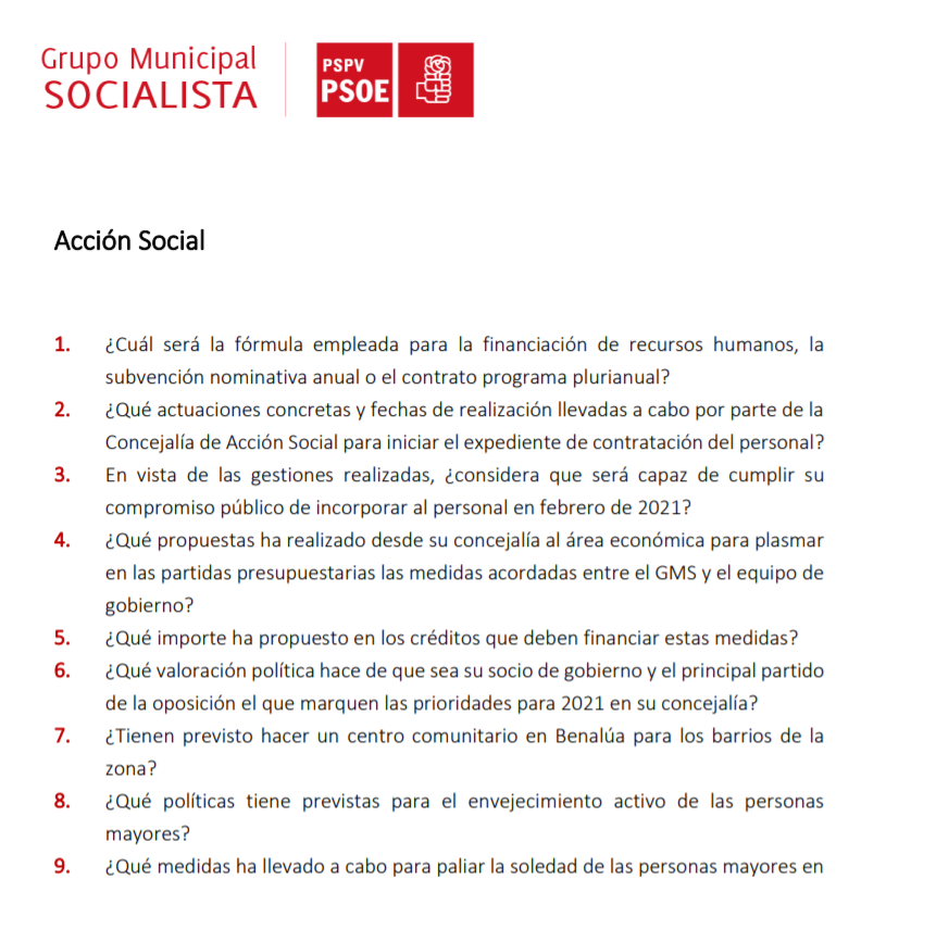 Son preguntas que nos hacemos desde todas las áreas las y los concejales socialistas, pero también son preguntas que se está haciendo la ciudadanía desde hace tiempo, preguntas que nos han sido trasladadas en reuniones con vecinos y representantes vecinales.